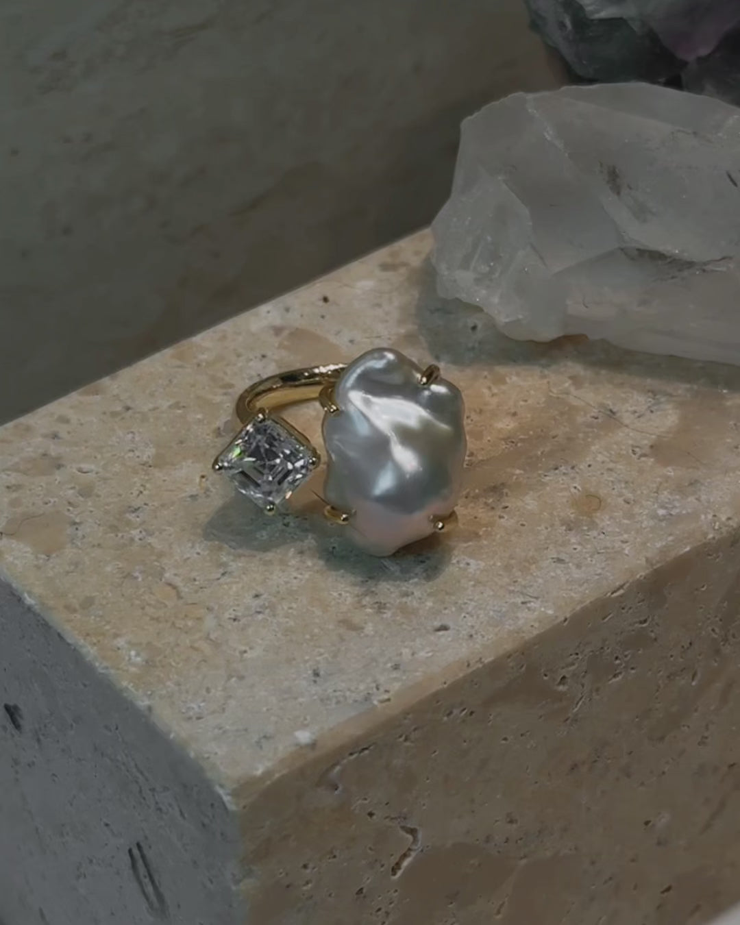 Duality Ring 2.0 – Baroque Pearl and Moissanite - Antonia Y. Jewelry
