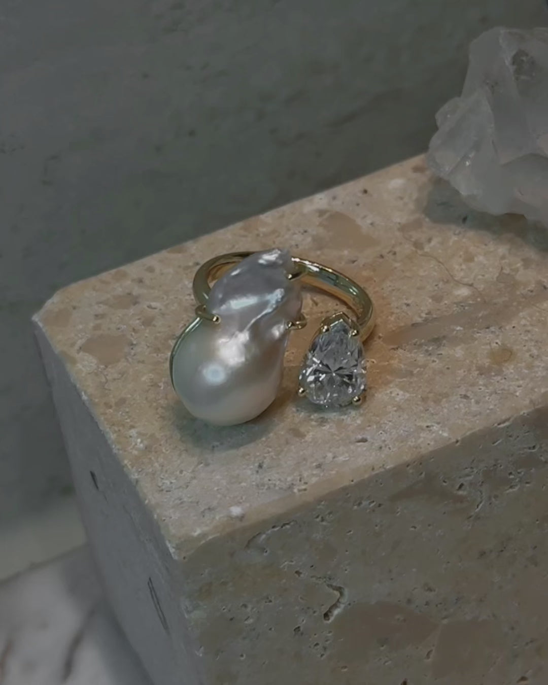 Duality Ring 2.0 – Baroque Pearl and Moissanite - Antonia Y. Jewelry